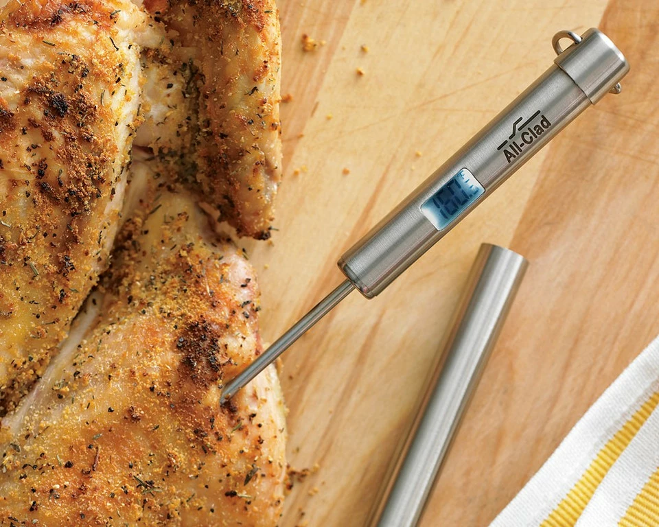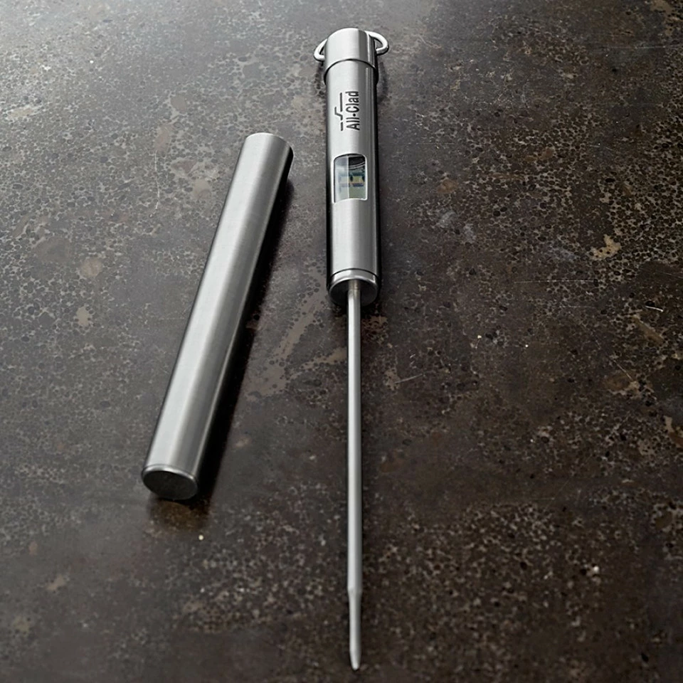 Culinary professionals rely on instant-read thermometers like this one to take the guesswork out of cooking and baking. An everyday kitchen essential, All-Clad’s thermometer is equipped with an easy-to-read backlit digital display for quick viewing.