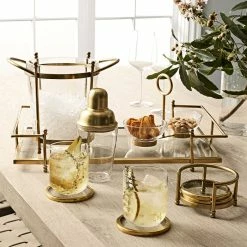 Set the scene for entertaining with the gleaming art deco style of our exquisite ice bucket. The striking glass vessel is set within a footed stainless-steel stand. Defined by the distinctive warmth of antique brass and hand-hammered glass, this ice bucket shines with bold simplicity.