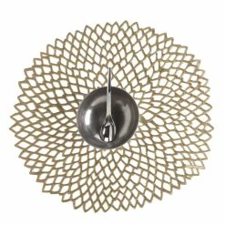 Drawing inspiration from nature, this textural placemat brings graceful shape and tonal colour to the table. The circular mat is crafted for indoor or outdoor use in a pattern that captures the curved, overlapping lines of dahlia petals. Its metallic finish makes it well suited for both everyday use and special-occasion meals.