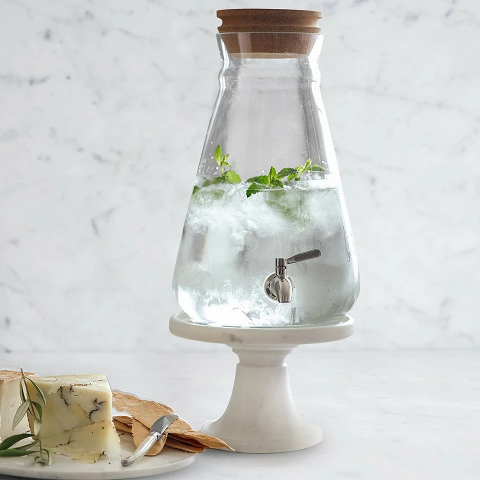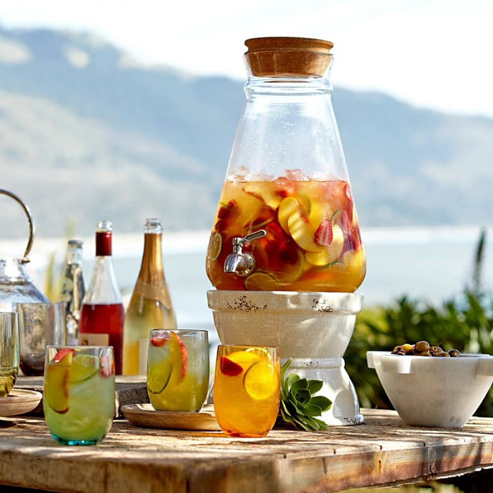 Serving beverages is a breeze with this glass dispenser, which lets everyone help themselves to fresh juice, water, iced tea, sangria or other refreshments.