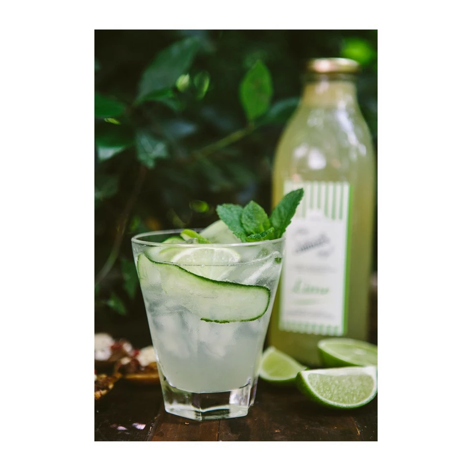 - Lime juice and zest, sugar, water, citric and tartaric acids.