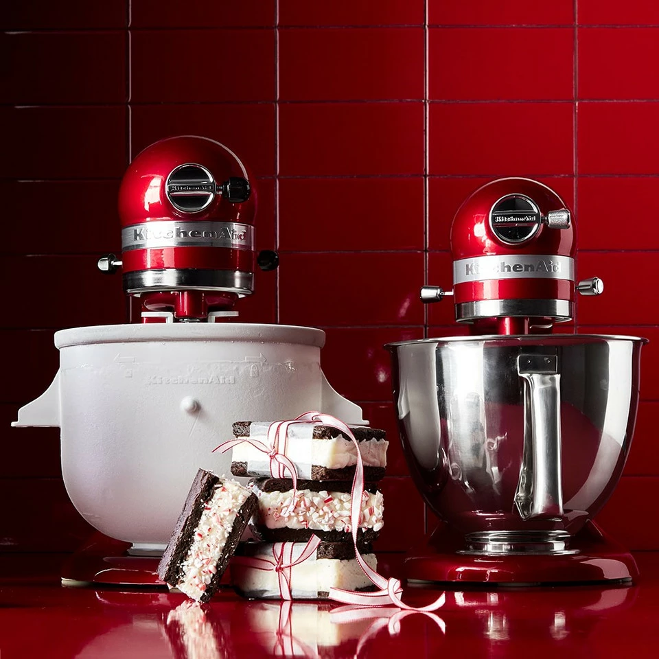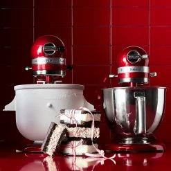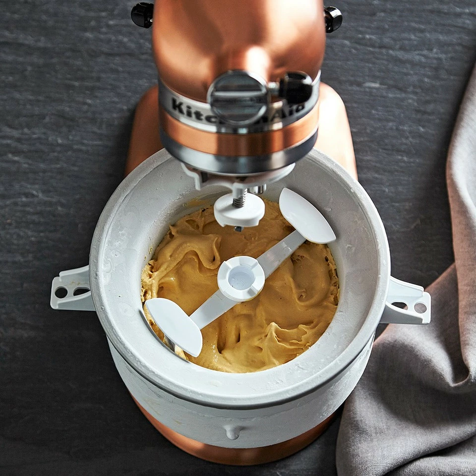 Use any KitchenAid Stand Mixer to prepare ice cream parlour treats at home – it’s easy with this accessory. The rotating dasher and insulated freezer bowl attach to your mixer, whipping up 1.9 L of velvety-smooth frozen dessert in just 20–30 minutes.