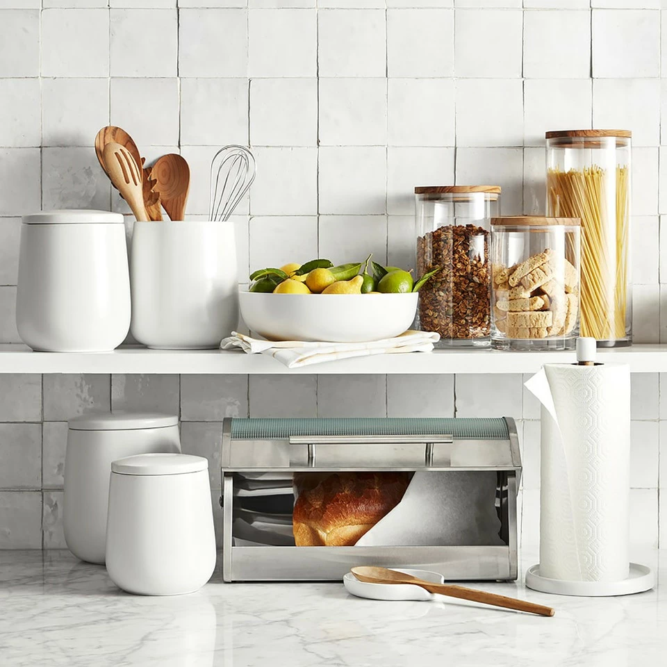 Our slender glass canisters bring the warmth of olivewood to your benchtop while providing storage for staples like pasta, sugar, rice and tea. Olivewood is tight-grained and extremely sturdy, making it well suited to daily use in the kitchen.