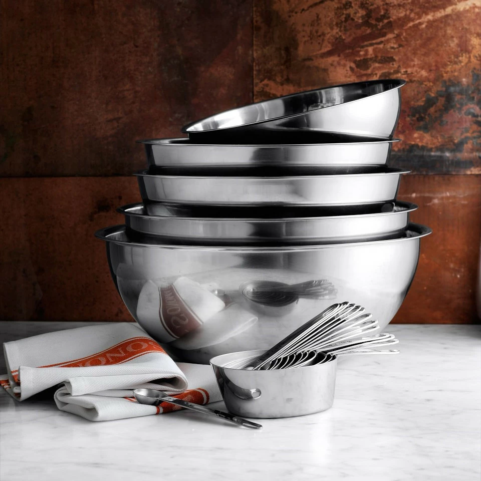 Our stainless-steel bowls are modelled after the heavy-duty ones used in restaurant kitchens for everything from mixing ingredients to kneading dough to storing foods in the refrigerator.