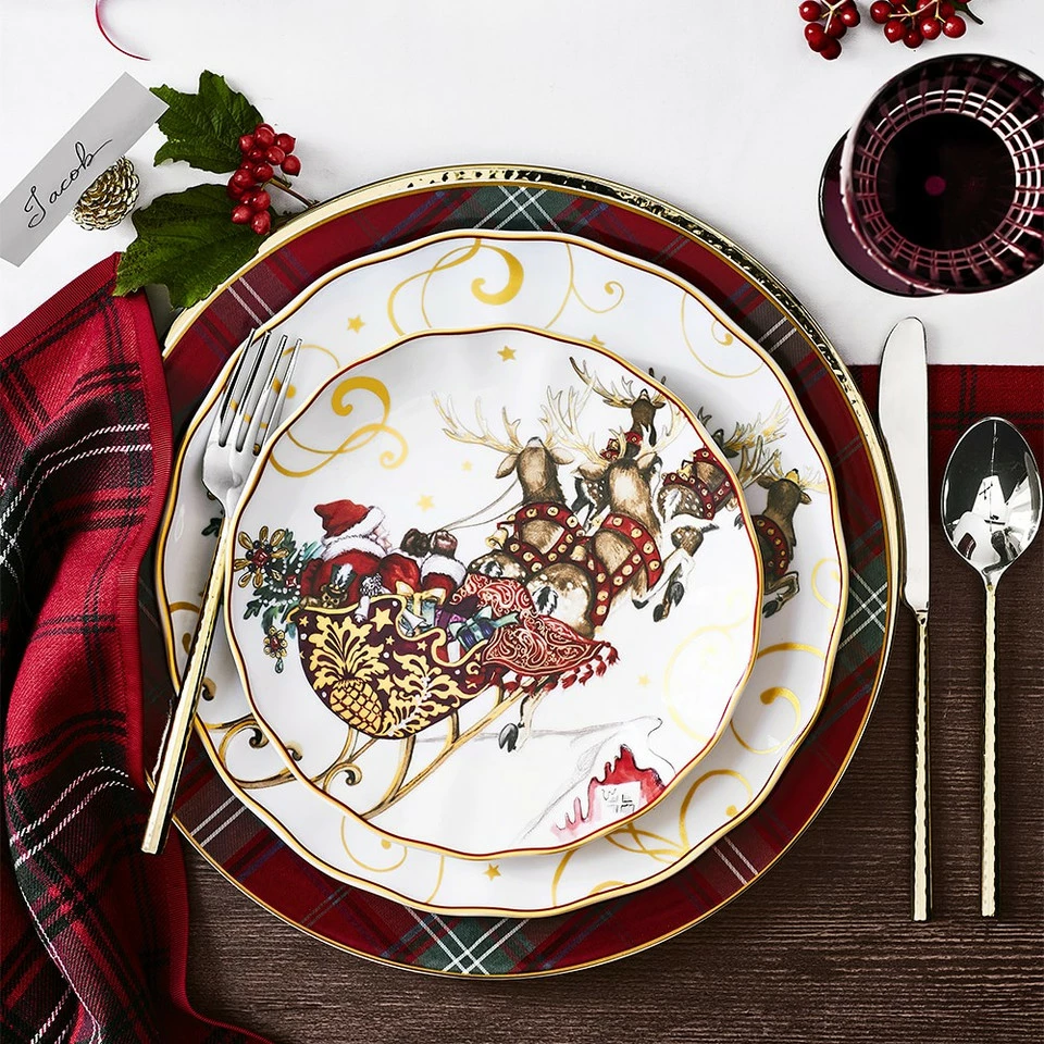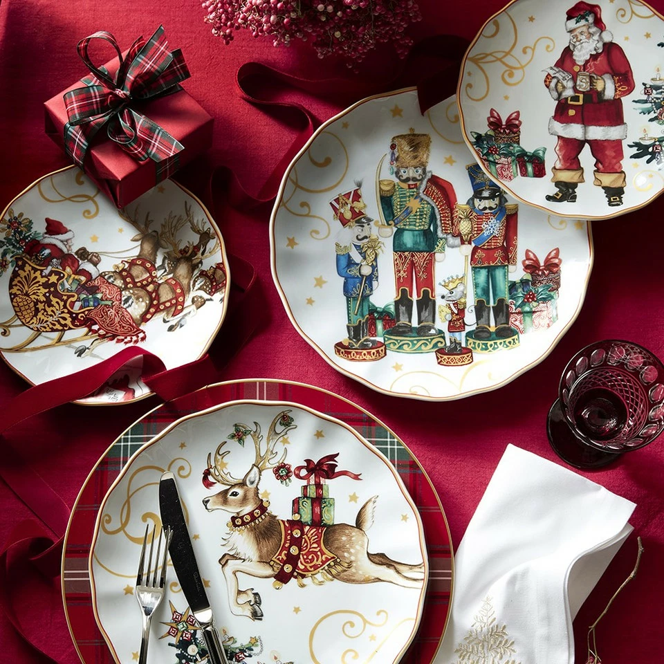 Celebrate the magic of the season with collectable dinnerware and servingware inspired by the legendary 19th-century poem “A Visit from St. Nicholas.” Each porcelain design boasts vintage-style artwork featuring a classic scene or icon – from Santa and his sleigh to colourful Christmas trees.