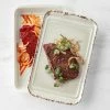 - Top tray nests perfectly in lower tray and features a textured surface and perimeter wall to elevate food and contain drippings.