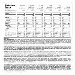 - Jalapeño Peach: Water, peaches (peaches, ascorbic acid, citric acid), sugar, tomato paste, distilled vinegar, apple cider vinegar, Worcestershire sauce (distilled vinegar, molasses, corn syrup, water, salt, caramel colour, garlic powder, sugar, spices, anchovies, tamarind, natural flavour), salt, jalapeño peppers, jalapeño powder (modified food starch, maltodextrin, jalapeño pepper, vinegar, salt), spice blend (dried onion, dried garlic, spices, turmeric), onion powder, roasted garlic, natural smoke flavour, mustard powder, black pepper, natural flavour.