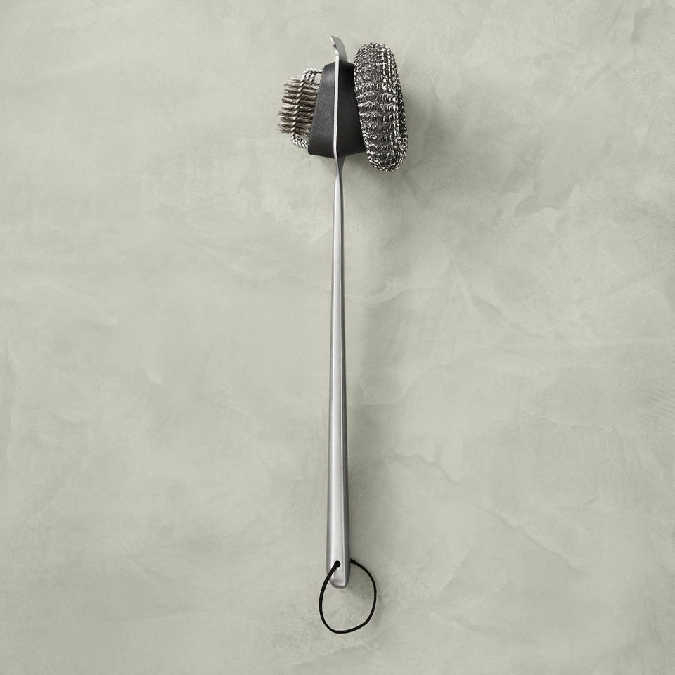 - Design combines wire brush, steel-wool scrubber and stainless steel scraper.
